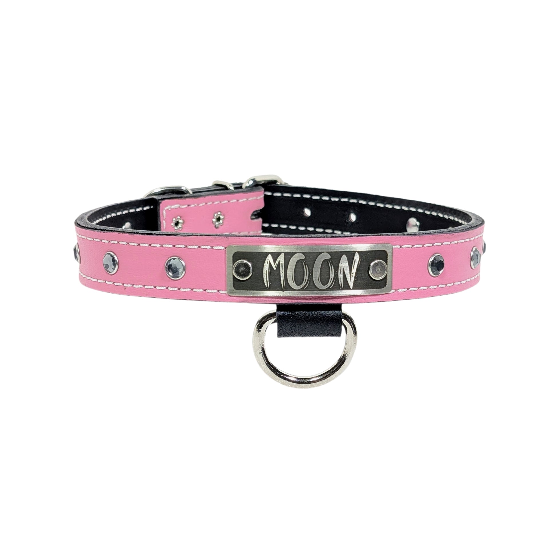 Coleira de couro personalizada com pedras preciosas - 1" de largura.